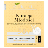 Charakterystyka Serii Produkty z serii Bielenda Kuracja Młodości skupiają się na intensywnym nawilżaniu, liftingu, i regeneracji. W linii znajdziemy m.in. kremy i serum wzbogacone o składniki takie jak peptydy, złoto, czy ekstrakt ze śluzu ślimaka, które są znane ze swoich właściwości przeciwstarzeniowych.