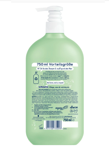 SCHAUMA 7 ziół świeży szampon do włosów normalnych i szybko przetłuszczających się. Cześć! Jestem Twoim szamponem i tak dbam o Twoje włosy: wzmacniam włosy od nasady aż po końcówki, usuwam nadmiar tłuszczu i nadaję strukturze włosów lekką świeżość. Dla świeżych, zadbanych włosów o naturalnej objętości. Moja formuła z 7 ekstraktami ziołowymi jest wegańska* i nie zawiera silikonu. Pochodzę z recyklingu: Korpus mojej butelki** jest wykonany w 50% z plastiku pochodzącego z recyklingu, a zakrętka w 25% z plastiku pochodzącego z recyklingu. Pamiętaj, aby mnie poddać recyklingowi! W tym celu oddziel zakrętkę od korpusu butelki i wyrzuć obydwa do plastikowych odpadów.*** Jak mnie używasz? Delikatnie rozprowadź szampon na wilgotnych włosach i poczekaj, aż zacznie działać. Nie zapomnij zakręcić kranu, aby oszczędzać wodę. Następnie dokładnie spłucz włosy. Schauma. Pielęgnuj to, co jest dla Ciebie ważne. Bądź mądrzejszy. Oszczędzaj wodę. Ponownie wprowadzać do obiegu. Więcej informacji na www.smarterinitiative.de * Nie zawiera składników pochodzenia zwierzęcego. ** Bez etykiety *** Proszę sprawdzić lokalne warunki recyklingu.