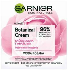 Botanical Cream - Rose Floral Water marki GARNIER. Krem nawilżający. Przeznaczony do pielęgnacji skóry suchej i wrażliwej. Formuła posiada aż 96% składników pochodzenia naturalnego. Została wzbogacona wodą różaną oraz antyoksydantem. Nie zawiera parabenów, silikonu ani sztucznych barwników. Produkt testowany dermatologicznie. Kosmetyk umieszczono w poręcznym opakowaniu.
