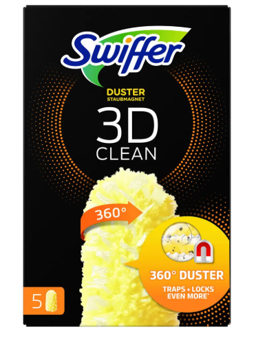 Pożegnaj się z kurzem, brudem i włosami! Magnetyczny odkurzacz Swiffer Dust Magnet 3D wychwytuje i zatrzymuje kurz, sierść i alergeny pochodzące od roztoczy kurzu, kotów i psów. Dzięki tysiącom elastycznych, puszystych włókien dopasowuje się do kształtu i dociera do każdego zakamarka – dzięki temu kurz i włosy można usuwać praktycznie z każdej powierzchni, a dzięki ściereczce 3D z magnesem na kurz, nawet z dowolnego kierunku. Nasza rada: Szczególnie przydatna przy zbieraniu sierści zwierząt lub w przypadku alergii na kurz. Magnetyczny zbieracz kurzu Swiffer jest tak szybki i łatwy w użyciu, że ścieranie kurzu staje się prawdziwą przyjemnością. Stosuj ściereczki wymienne Swiffer Dust Magnet z uchwytem Swiffer Dust Magnet.