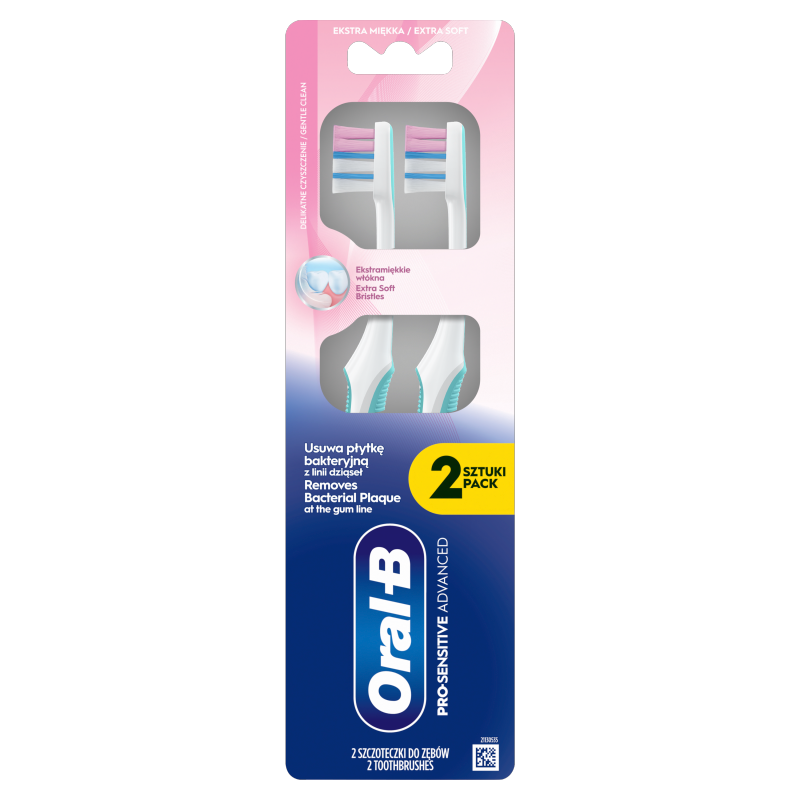 Reinigen Sie Ihre Zähne sanft mit der Handzahnbürste ORAL-B PRO-SENSI ADVANCED. Die extraweichen Borsten entfernen Plaque vom Zahnfleischrand. Diese Zahnbürste verfügt über mehrköpfige Borsten für eine gründlichere Reinigung, gleichmäßig lange Borsten für sanfteres Putzen und einen kleinen Bürstenkopf für einfaches Erreichen aller Bereiche im Mund. Holen Sie sich ein strahlenderes, weißeres Lächeln und verbessern Sie Ihre Mundgesundheit mit ORAL-B, der Marke Nr. 1, die von Zahnärzten weltweit verwendet wird*.* Basierend auf einer für P&G durchgeführten Studie mit einer repräsentativen Stichprobe von Zahnärzten weltweit.