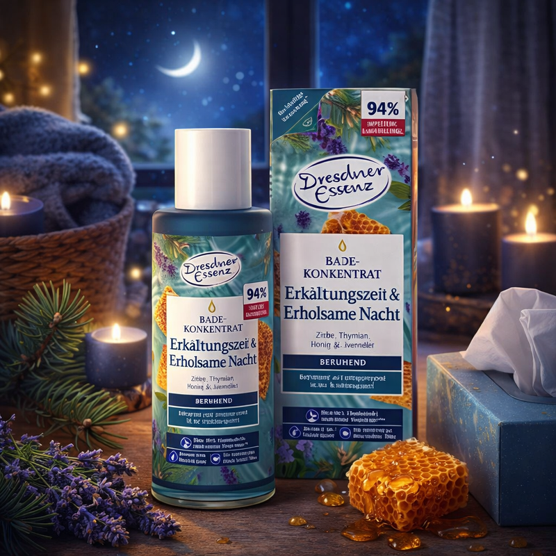 Wyzwalający koncentrat do kąpieli COLD SEASON & RESTFUL NIGHT z naturalnymi olejkami eterycznymi z tymianku, limby i lawendy oraz naturalnym miodem przyjemnie rozgrzewa i koi. W połączeniu z ciepłą wodą, koncentrat zapewnia uczucie komfortu i relaksu w sezonie przeziębień i grypy, zapewniając spokojny sen. Intensywny, roślinny kompleks pielęgnacyjny rozpieszcza skórę i pomaga chronić ją przed wysuszeniem.