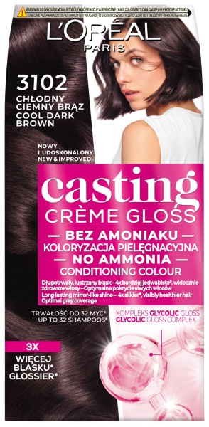 L'Oréal Paris Casting Crème Gloss Farba do włosów 3102 chłodny ciemny brąz