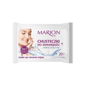 MARION Chusteczki do demakijażu twarzy, oczu i szyi z wyciągiem z aloesu i witaminą E 20 szt