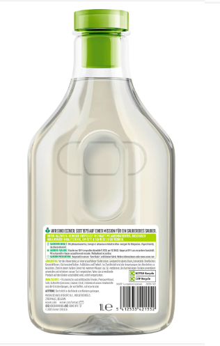 INFORMACJE O PRODUKCIE • Uwalnia moc biodegradowalnych składników, aby usunąć tłuszcz i brud • Bardziej skoncentrowana formuła w porównaniu z poprzednim uniwersalnym środkiem czyszczącym Ecover 0,75 l • Ze świeżym zapachem trawy cytrynowej i imbiru • Wyprodukowano w naszej fabryce posiadającej certyfikat True Zero Waste (status Platinum) • INTELIGENTNA ZAWARTOŚĆ • Biodegradowalne składniki • INTELIGENTNE OPAKOWANIE • Korpus butelki wykonany jest w 100% z recyklingowanego plastiku (PCR) i nadaje się do recyklingu • Nakrętka wykonana jest w co najmniej 99% z recyklingowanego plastiku (PCR) i nadaje się do recyklingu