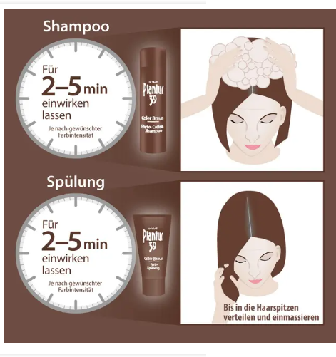 Efekt koloryzacji staje się coraz bardziej widoczny z każdym myciem. Zarówno nieestetyczne siwe włosy, jak i jasne odrosty zostają ukryte. Rezultatem są piękniejsze włosy, nawet po czterdziestce. Aktywująca fitokofeina wnika w mieszki włosowe podczas mycia (wyczuwalne po 120 sekundach ekspozycji).